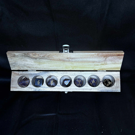 Chevron Amethyst DnD Dice with Wooden Case
