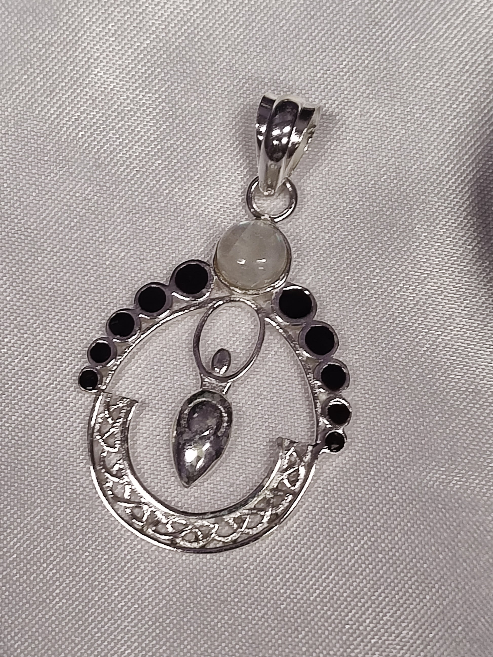 Rainbow Moonstone in Moon Goddess Sterling Silver Necklace Pendant